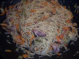 Frite os ovos em bastante óleo, desfazendo-os em bocadinhos, sem deixar cozer muito. Limpe os camarões, esfregue-os com sal e fécula de milho e passe por água. Seque com um pano e tempere com sal e óleo de sésamo. Aqueça o wok com óleo aromatizado e frite o camarão, já descascado. Junte a carne de porco assada e o cebolinho, todo cortado em pedaços pequenos. Tempere com sal, molho de soja e óleo de sésamo. Junte o arroz cozido de véspera. Frite em lume médio até os grãos de arroz estarem soltos. Junte os ovos pouco antes de servir